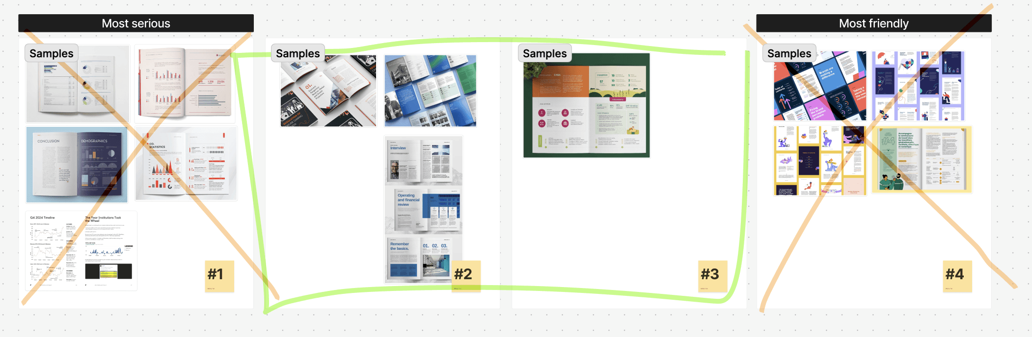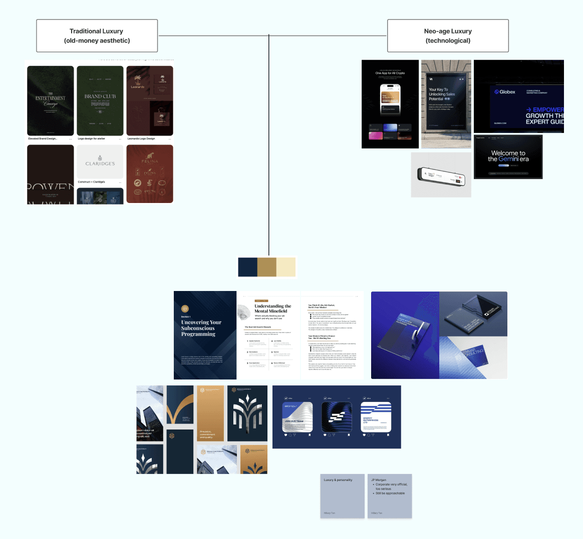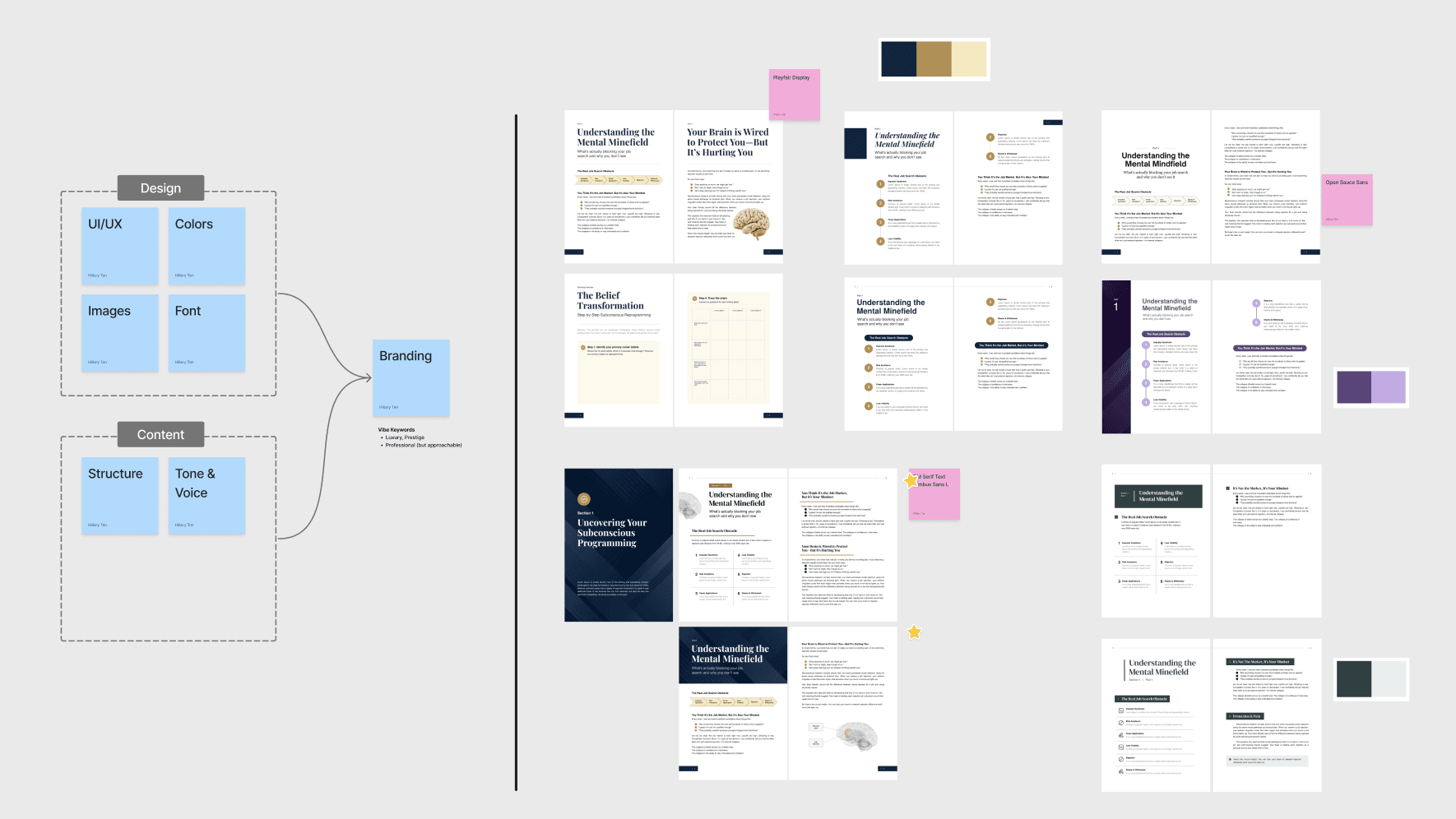 The client brought up the e-book before the brand, but we worked on them at the same time since they were also related to one another. We went through the their own version, then discussed the directions that we could take. FigJam was our moodboard where we laid everything out.